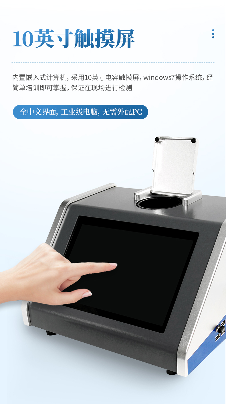 9、操作方便:采用10寸电容触摸屏,windows7操作系统,经简单培训即可掌握